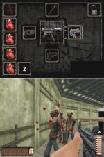 ![]() Schneller! Das Nachladen dauert leider seine Zeit... Schnell tauchen die ersten Untoten am unteren Bildschirm auf und es gilt sie schnellst möglich zu erledigen, bevor sie einem zu nahe kommen. Am Effektivsten ist dabei der berühmte Head-Shot. Allerdings sollte man am Ende eines Levels genügend viele Körperteile getroffen haben, da die Statistik auch Arme, Beine und den Körper gleichmäßig getroffen haben will. Die Spielfigur steuert sich während des gesamten Spiels selbst, wie bei einem waschechten Lightgun-Shooter. Ausnahmen sind nur die erwähnten Weggabelungen, an denen man per Stylus selbst entscheiden kann, so wie das aufschießen von Türen, die mit einer Sicherheitssperre versehen sind. ![]() Mit der MG wird richtig aufgeräumt! Geschossen wir per Stylus und nachgeladen indem ihr die Munition, die ihr rechts unten (je nach Einstellung, ob ihr Rechts- oder Linkshänder seid) am Bildschirm seht, nach links ins Magazin zieht. Daraufhin erfolgt eine kurze Nachladesequenz. Kommt euch ein Zombie zu nah, darf ihm aber auch gerne mit der im späteren Spielverlauf gefundenen Brechstange eins übergezogen werden. Hierzu bewegt ihr den Stylus schnell von links nach rechts quer über den Bildschirm oder umgekehrt. Die Waffenauswahl vollzieht ihr mit dem Steuerkreuz, wobei ihr auf dem oberen Bildschirm einsehen könnt, wo welche Gun liegt. Insgesamt könnt ihr vier Waffen tragen: Beretta, Schrotflinte, Brechstange und MG, die ihr auch in dieser Reihenfolge während der 4 Kapitel mit je 3 Level einsammeln werdet. ![]() Zum Nachladen zieht ihr die Munition von links nach rechts am unteren Bildschirm. Das Spiel bietet überaus packenden Sound und Effekte für eine Handheldumsetzung, die sehr gut zum Genre passen. Grafisch wird nicht unbedingt viel geboten und die zwar vielen, aber tristen Levelabschnitte werden schnell langweilig, allerdings braucht das Spiel auch nicht mehr, da die düstere Atmosphäre so besser zustande kommt. Jedes Kapitel unterscheidet sich erheblich vom letzten: so seht ihr ein Gefängnis, einen Sumpf, ein Labor, eine Fabrik, ein Hangar, usw. Hinzu kommen noch die extrem vielen und unterschiedlichen Zombietypen und Monster, die oftmals in übertrieben unfairen Horden daher kommen und nicht immer auf die selbe Art angreifen. So werdet ihr auch mit abgetrennten Köpfen beworfen, von Fledermäusen oder Krokodilen attackiert oder eben klassisch angekratzt. ![]() Die Schrotflinte erweist sich besonders im Nahkampf als recht effektiv. Der enthaltene Mehrspielermodus gestaltet sich als nur sehr kleiner Zusatz. Der einzige Unterschied besteht darin, dass ihr nur die Missionen einzeln anwählen könnt und nicht im Story-Modus spielt (geht im Einzelspieler beides) und eben mit doppelter Feuerkraft in die Zombieschlacht startet. Leben und Statistik werden geteilt. Dead'n'Furious ist sehr kurzlebig. Es muss nicht an einem Stück durchgespielt werden, da nach jedem Level gespeichert wird, aber die meisten Spielabschnitte erweisen sich als so schwer, dass das Game sehr frustrierend sein kann. Somit erwartet euch leichte Kost, aber das bisher einzige allein stehende Lightgun-Shooter-Game für den DS. Point Blank ist schließlich mehr eine Portierung, mit kleinen Extras. Dafür aber zweifelsohne das bessere Spiel!